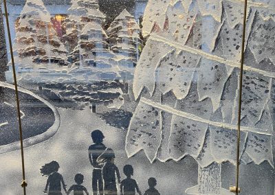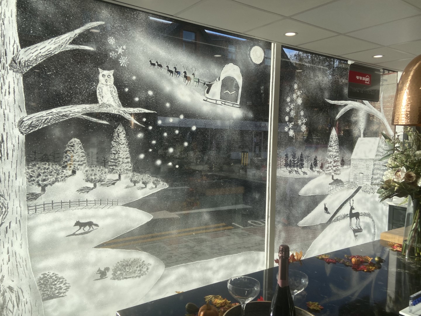 Window Art by Caroline Ascroft offers a truly magical and distinctive way to transform your windows during the festive season. Specialising in professional Christmas window designs, Caroline creates intricate and captivating snow scenes that instantly bring festive cheer to any home or business. Whether it’s a bustling shopfront, a cosy restaurant, or a family home, her beautifully detailed snow window creations mesmerise all who pass by, encouraging them to stop and admire the delicate artistry.